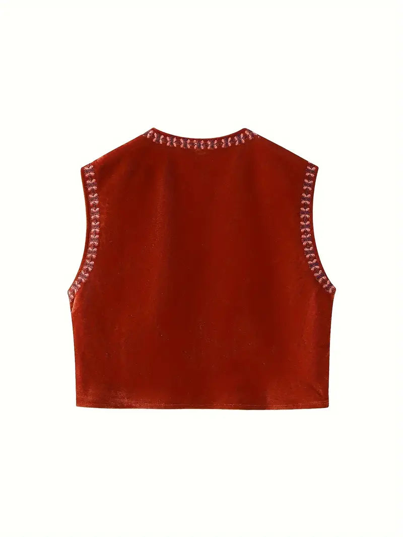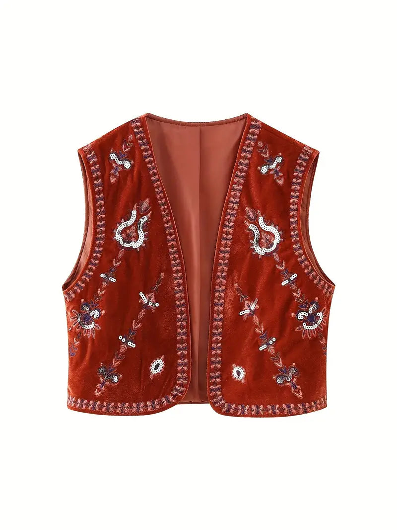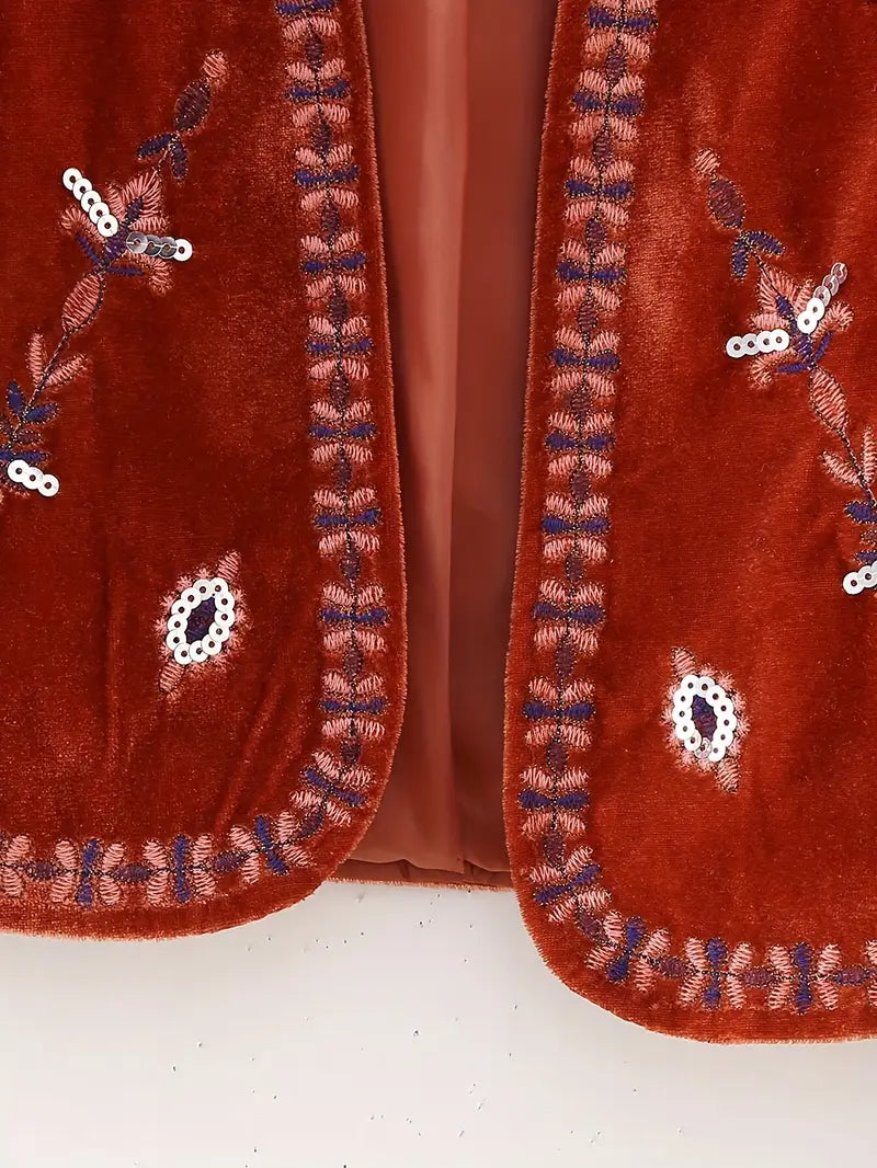 Gilet Sans Manches en Velours Brodé & Perlé – L’Incontournable Chic et bohême